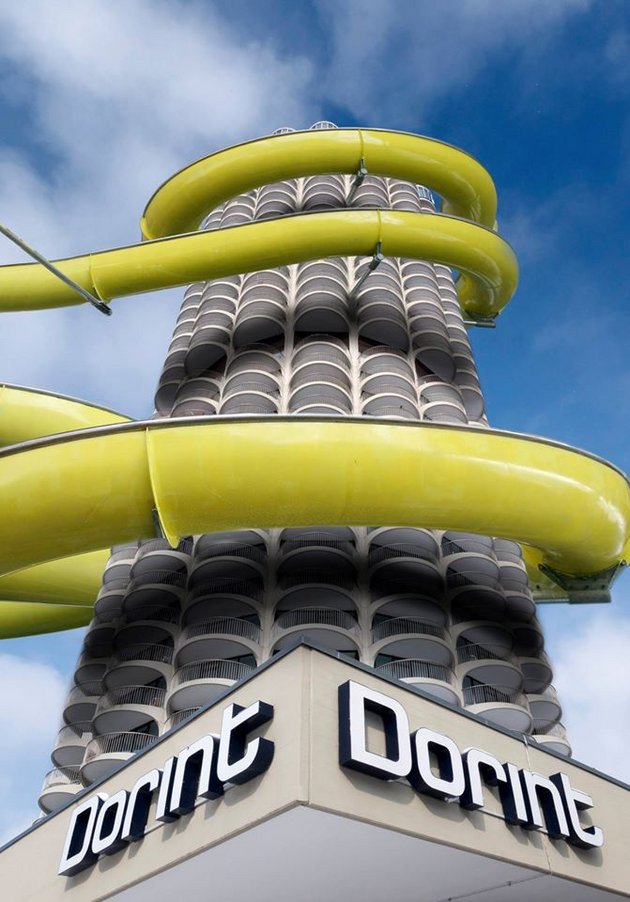 Das Dorint Hotel An der Kongresshalle Augsburg führt eine Quick-Check-out-Rutsche ein: Aus 100 m Höhe mit viel Schwung in den neuen Tag durchstarten!