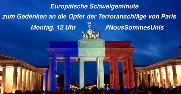Europäische Schweigeminute zum Gedenken an die Opfer der Terroranschläge von Paris