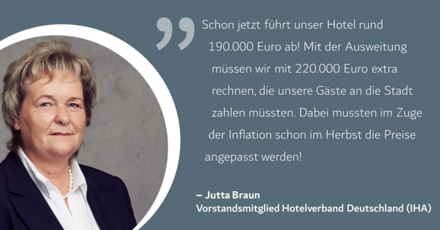 „Schon jetzt führt unser Hotel rund 190.000 Euro ab! Mit der Ausweitung müssen wir mit 220.000 Euro extra rechnen, die unsere Gäste an die Stadt zahlen müssten. Dabei mussten im Zuge der Inflation schon im Herbst die Preise angepasst werden!“
