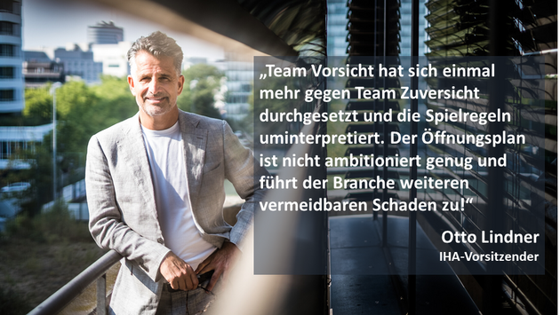 „Team Vorsicht hat sich einmal mehr gegen Team Zuversicht durchgesetzt und die Spielregeln uminterpretiert. Der Öffnungsplan ist nicht ambitioniert genug und führt der Branche weiteren vermeidbaren Schaden zu!“