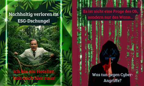 Seien Sie dabei und informieren Sie sich über die aktuelle Cybergefährdungslage und die Folgen von NIS 2 oder erfahren Sie, wie Sie als Hotelier aus dem ESG-Dschungel entkommen können.